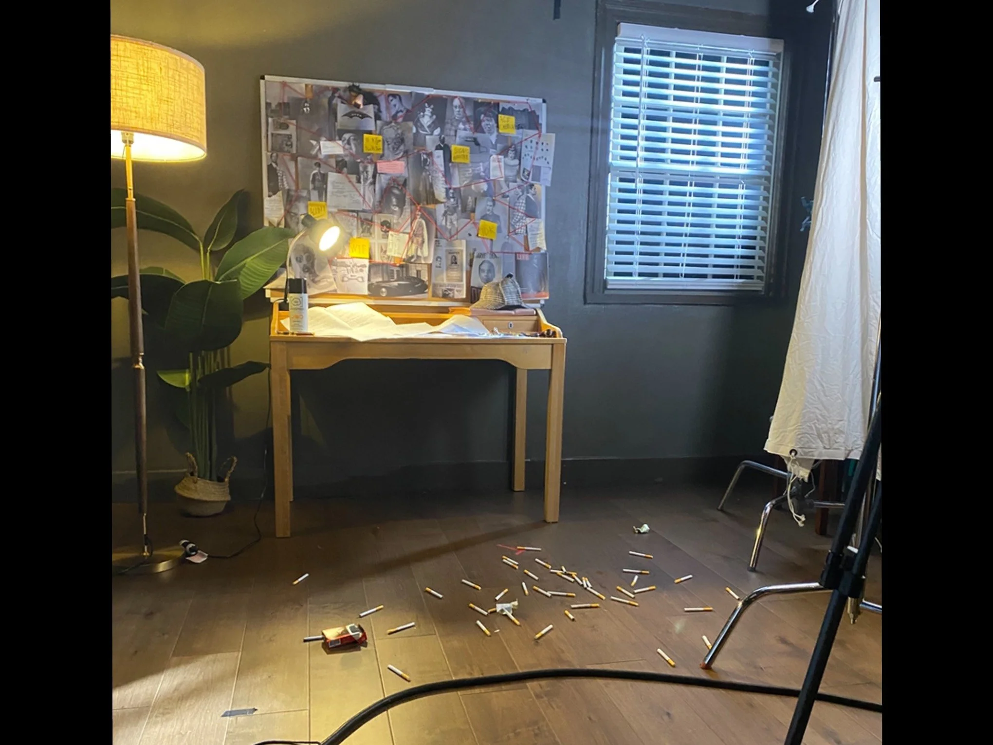 The day before shooting I arrived to 501, and took items away from the shelf. I covered certain areas with blankets to hide the shelf’s modern design and then began placing various props onto it. Meanwhile my DP set up a window flat right next to it with two large curtains on both sides.